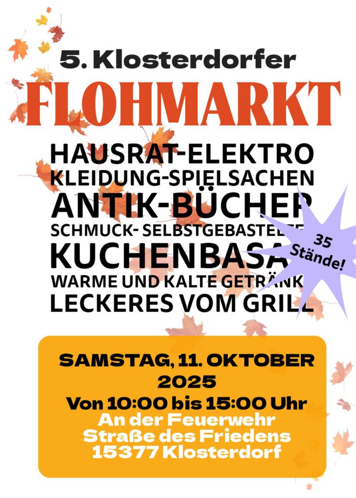 Der erste Flohmarkt fand im Herbst 2023 statt, initiiert von zwei engagierten Klosterdorferinnen, die frischen Wind ins Dorfleben bringen wollten. Mit Unterstützung des Heimatvereins Klosterdorf e.V. hat sich die Veranstaltung inzwischen zu einem festen Bestandteil des örtlichen Veranstaltungskalenders entwickelt.